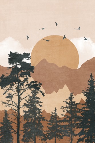 IDEAWALL Framed Sunset Clouds Over Autumn est Abstract Geometric Illustrations Minimalism Shapes Multicolor Boho Living Room Bedroom Office White