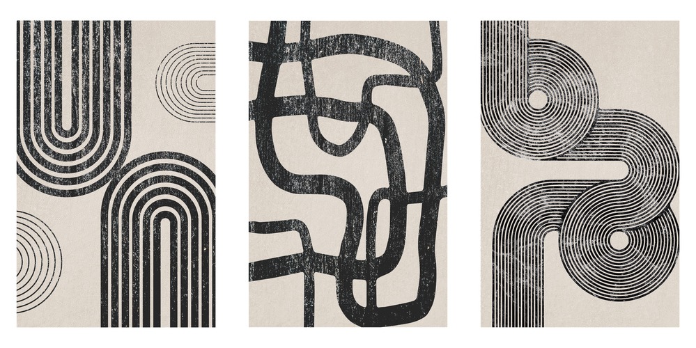 SUNSCAPE Framed Abstract Minimalist Black and White Geometric Lines Illustration Minimalist Living Room Bedroom and Office WHITE