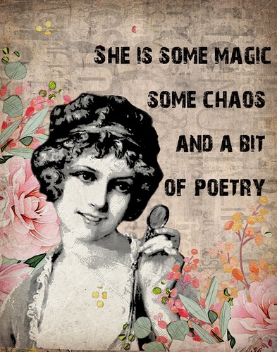 Framed Poster She is Some Magic Retro Renaissance Floral Female Portrait Female Inspirational Vintage Eclectic Girls Gift Living Room Bedroom Office Black