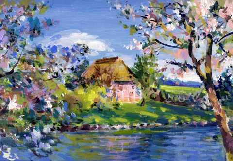 Spring Motif Painting Landscape in Lower Saxony Oil Paints on Acrylics Removable Mural SelfAdhesive Large paper