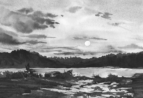 Removable Sticker Mural Watercolor Shining Moon Over Dark est Nature Wilderness Fine Duotone Decorative Landscape Digital Zen Living Room Bedroom Office