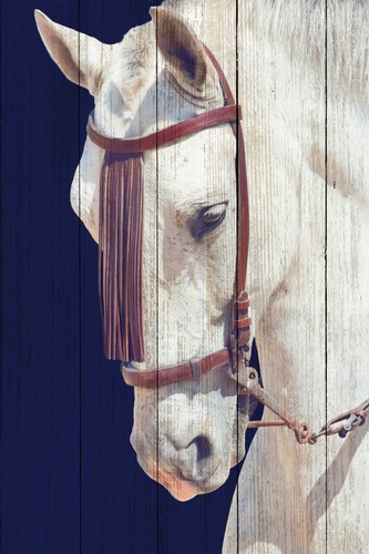 Wood Panel White Stallion Horse Bridle Nature Animals Digital Realism Decorative Farmhouse Zen Rustic Multicolor Wildlife Living Room Bedroom Office