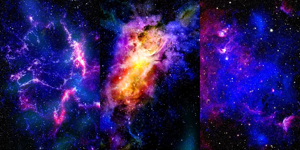 Framed Set Purple and Orange Nebula Galaxy Astronomy Space Skylines Digital Global Scenic Colorful Living Room Bedroom Office Natural