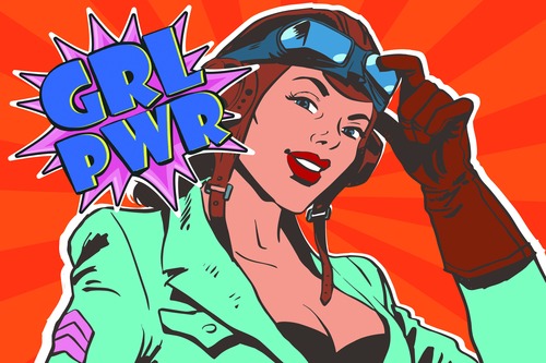 Girl Power Woman with Vintage Aviator Unim with Orange Stripe Pop Culture Quotes Illustrations Pop Comic Ultra Living Room Bedroom Office