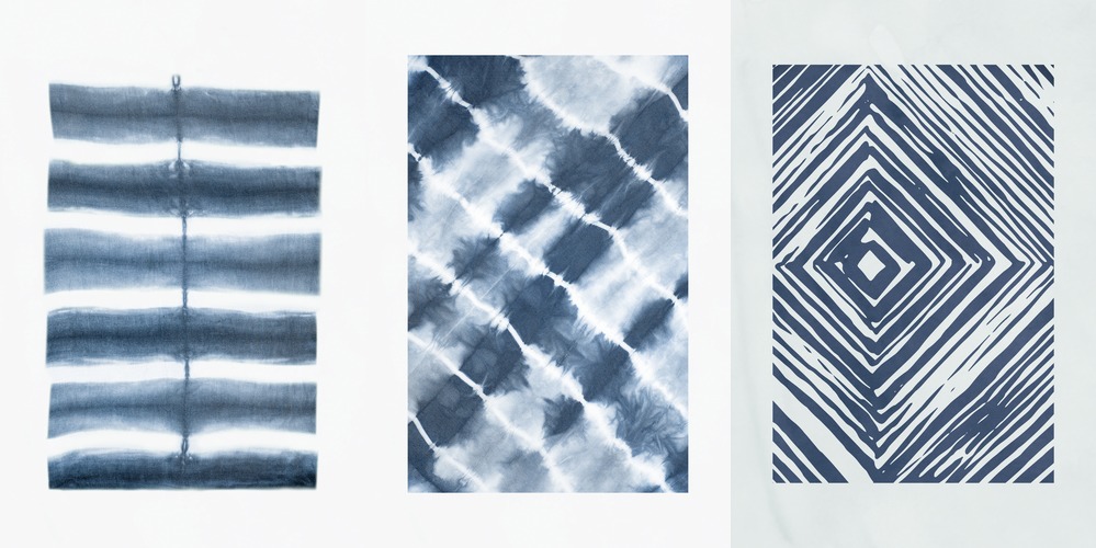 Set Blue Line and Diamond Illusion Collage Abstract Patterns Illustrations MidCentury Living Room Bedroom Office