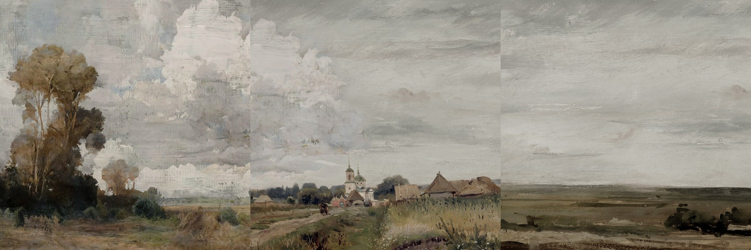 Framed Country Church Serene Village and Fields Peaceful Nature Wilderness Illustrations Decorative Living Room Bedroom Office BLACK