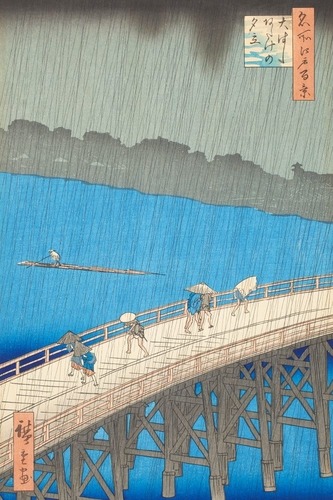 Framed Japanese Ukiyoe Painting Downpour at Ohashi Bridge Atake by Utagawa Hiroshige
