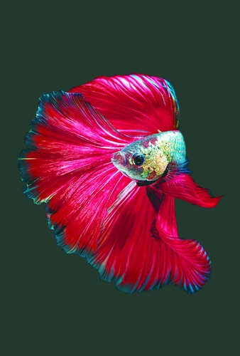 Siamese Fighting Fish with Red Pink and White Fins Underwater Marine Life Ocean Nautical Closeup Colorful Living Room Bedroom Office