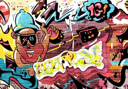 Removable Sticker Mural Hip Hop Colorful Spray Paint Typography Graffiti Street Cityscape Digital Realism Urban Edgy Living Room Bedroom Office