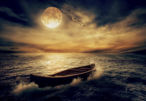 Boat Drifting Away from Past in Middle of Ocean After Storm Removable Mural SelfAdhesive Large paper