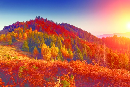 Golden Hour Over Autumn Mountain est Nature Wilderness Photography Rustic Landscape RelaxCalm Multicolor Living Room Bedroom Office