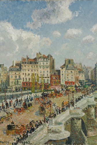 Premium Framed The PontNeuf Sunlight by Camille Pissarro Historic Classical Illustrations Fine Decorative Vintage Retro Living Room Bedroom Office Natural