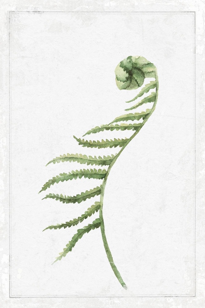 Hand Drawn Green Slim Tree One Sided Leaf Series work