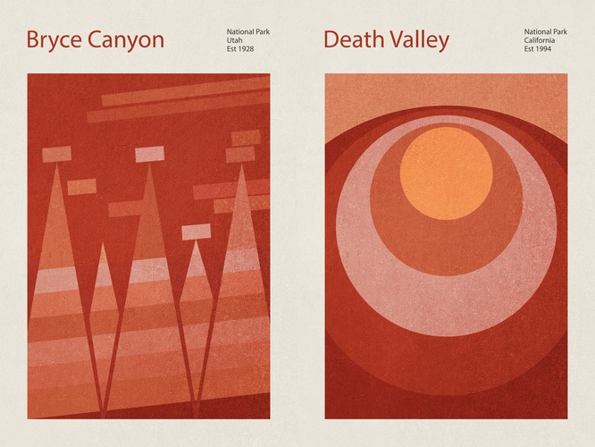 IDEAWALL Framed Set Geometric Bruce Canyon Death Valley National Park Abstract Shapes Illustrations Decorative Living Room Bedroom Office Black