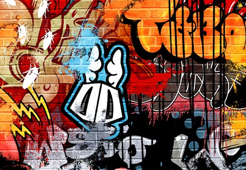 Removable Sticker Mural Spray Paint Vibrant Typography Symbols Graffiti Street Cityscape Digital Realism Urban Edgy Living Room Bedroom Office