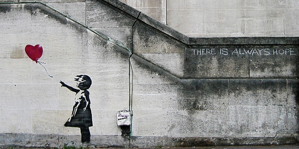 Framed There is Always Hope Girl and Red Heart Balloon Street Guerilla Home Stretched and Framed White