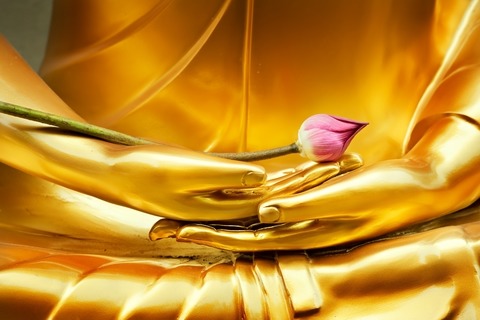 Golden Buddha Statue Holding Unbloomed Lotus Flower ation