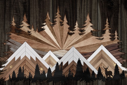 IDEAWALL Framed Wood Panel Snowy Mountains Nature Wilderness Illustrations CountryFarmhouse Rustic Multicolor Living Room Bedroom Office Natural