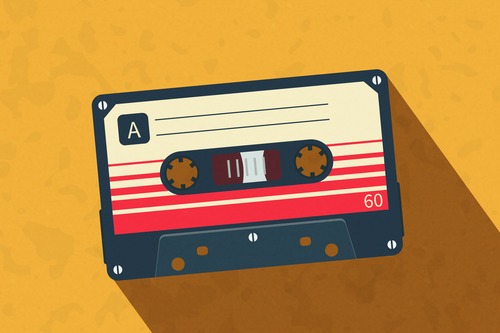 A Vintage Minutes Cassette Mix Tape with Yellow Orange Background Music Media Illustrations Pop Contemporary Urban Living Room Bedroom Office