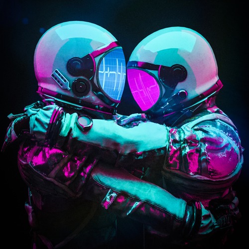 Framed Neon Retro Hugging Astronauts Astronomy Space Fantasy SciFi Digital Pop Decorative Living Room Bedroom Office White