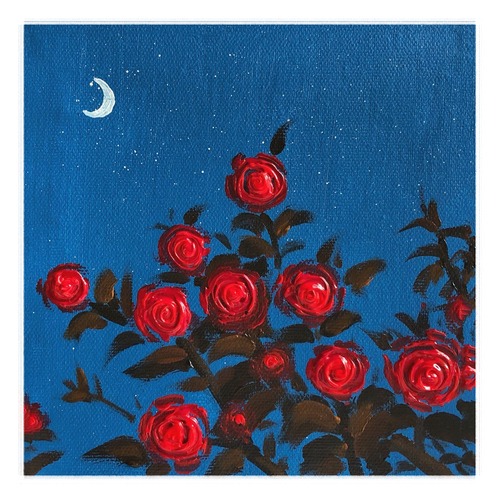 SIGNLEADER Framed Red Roses Below Crescent Moon Floral Wilderness Illustrations Rustic RelaxCalm Multicolor Ultra Living Room Bedroom Office Black