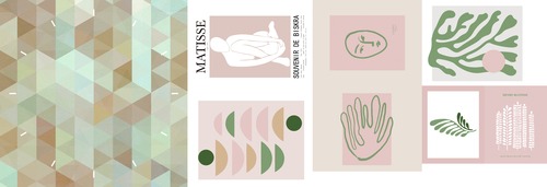 SIGNLEADER Framed Round Wooden Large Clock Set Matisse Pink Green Illustrations ative Living Room Kitchen Bedroom Office