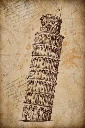 Retro Vintage Leaning Tower Pisa Italy Architecture Maps Landmarks Digital Decorative Scenic Urban Bohemian Living Room Bedroom Office