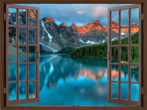 IDEAWALL Murals Bedroom Fake Window Beach Brown Window Removable paper Peel and Stick Stickers