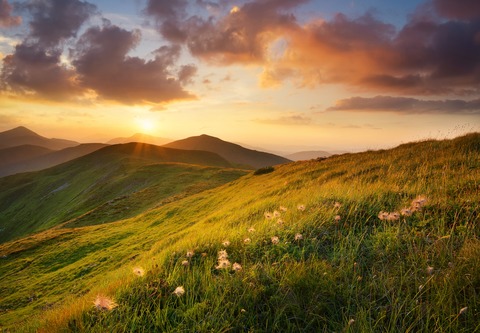 Mountain Field During Sunset Beautiful Natural Landscape Removable Mural SelfAdhesive Large paper