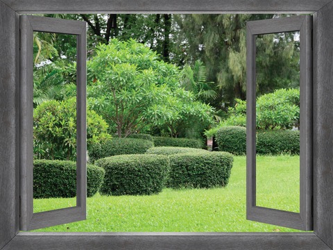 Open Window Tranquil Green Garden Mural Removable Sticker