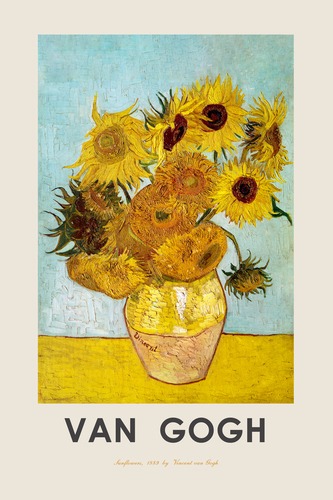 Framed Sunflowers by Vincent Van Gogh Historic Cultural Illustrations Fine Traditional Scenic Colorful Floral Living Room Bedroom Office Natural