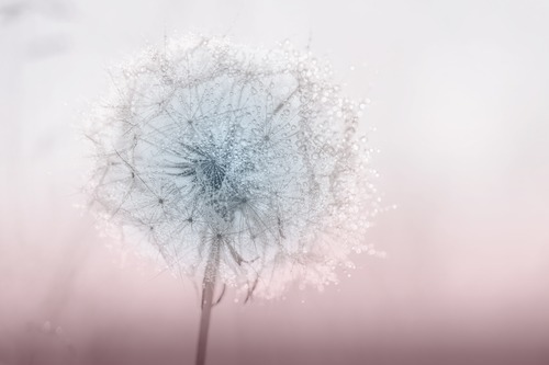 Framed Duotone Blue Pink Fuzzy Dandelion Details Floral Botanical Photography Realism Rustic Scenic Colorful Living Room Bedroom Office Natural