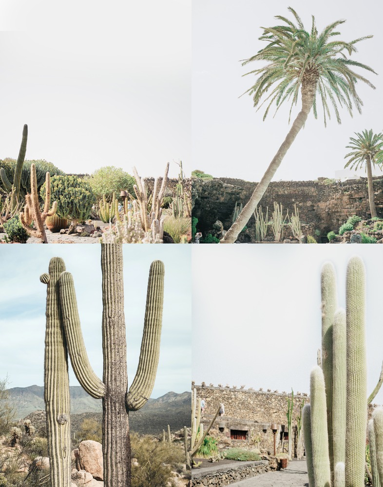 Framed Tropical Palm Tree Saguaro Cactus Set of Desert Landscape Nature Wilderness Décor Living Room Bedroom Black