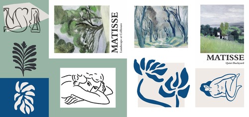 Framed Poster Set of Henri Matisse Abstract Nature and Figure Green and Blue Tones Illustrations Decorative Living Room Bedroom Office Black