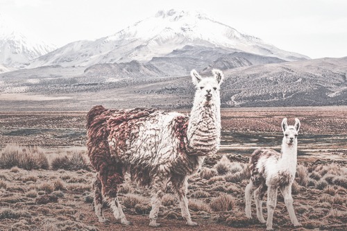 Framed Retro Vintage Alpaca Duo in Mountains Animals Wildlife Photography Realism Tropical Scenic Colorful Living Room Bedroom Office Natural