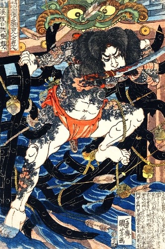 Japanese Ukiyoe Painting A Legendary Hero with a Sword in the Mouth by Utagawa Kuniyoshi