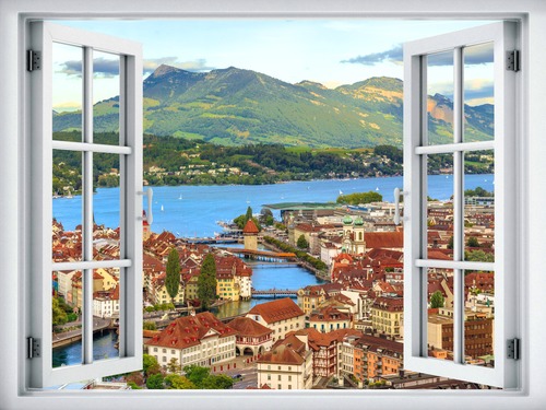 Removable Sticker Mural Window View Oceanside European City Nature Wilderness Photography Realism Decorative Landscape Digital Living Room Bedroom Office