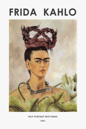 IDEAWALL Framed SelfPortrait with Braidy by Frida Kahlo Historic Cultural Illustrations Fine Traditional Colorful Living Room Bedroom Office White