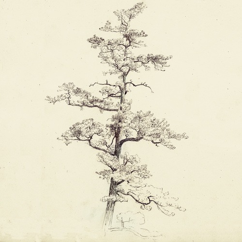 MUDECOR Framed Vintage Detailed Pine Tree Drawing Classic Illustrations Realism Decorative Scenic Panoramic Earth Living Room Bedroom Office BLACK