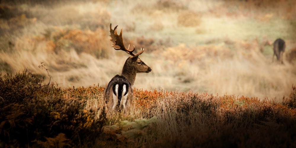 Framed Set Wild Desert Brush Field Landscape Brown Deer Stag Animals Nature Photography Realism Decorative Colorful Living Room Bedroom Office Black