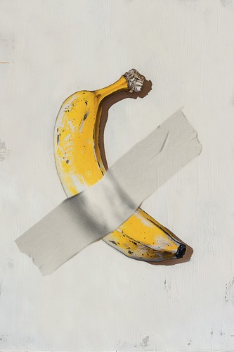 Framed Banana with Tape Pop Inspired Illustrations Decorative Multicolor Zen Rustic Calm Living Room Bedroom Office Natural
