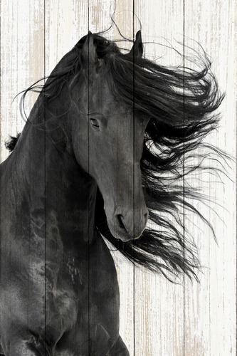 Framed Retro Wood Panel Flowing Hair Horse Nature Animals Digital Realism Decorative Farmhouse Zen Rustic Wildlife Living Room Bedroom Office Black