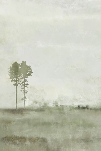 Framed Companions in Haze Twin Trees Standing in Muted Unity Nature Wilderness Illustrations Decorative Floral Botanical RelaxCozy Bedroom BLACK