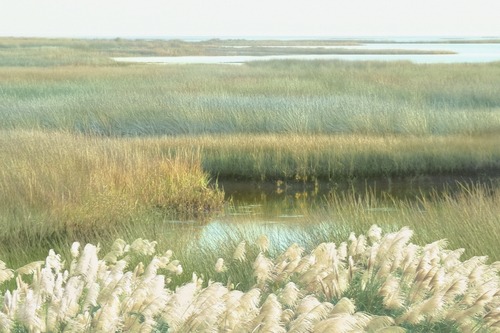 MUDECOR Large Tranquil Marshland Soft Pastel Landscape with Golden Reeds Illustrations Decorative Living Room Bedroom Office Large