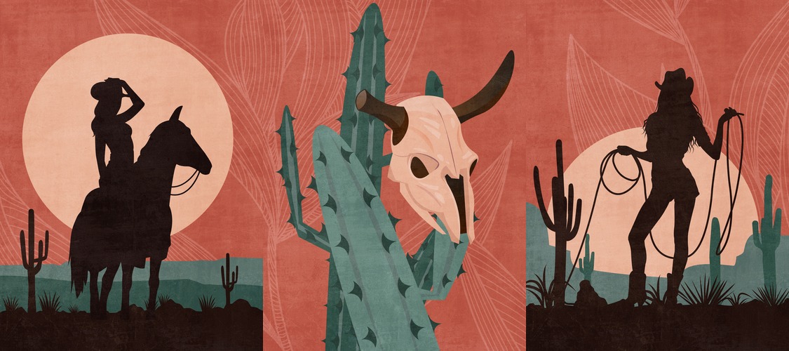 Framed Poster Desert Landscape Southwest Cactus Cowgirl Nature Wilderness Illustrations Decorative CountryFarmhouse Colorful Botanical Bedroom WHITE