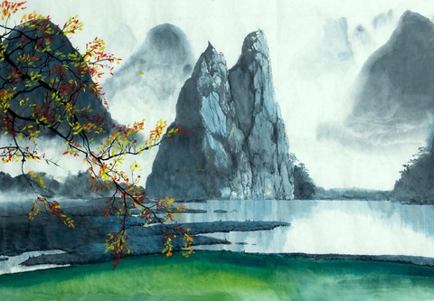Chinese Mountains Fog Autumn and Lake Removable Mural SelfAdhesive Large paper