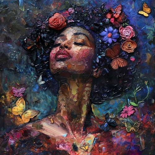 SIGNLEADER Extra Large Framed Floral Portrait Woman with Flowers and Butterflies Illustrations ative Living Room Bedroom Hotel Office Black