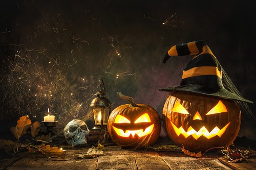 Framed Creepy Witch Jacko¡¯Lantern Pumpkin Skull Celebration Holiday Halloween Photography Decorative Living Room Bedroom Office Black