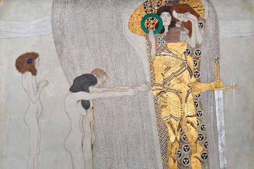 Framed Beethoven Frieze by Gustav Klimt Historic Cultural Illustrations Fine Decorative Colorful Vintage Retro Chic Living Room Bedroom Office Black
