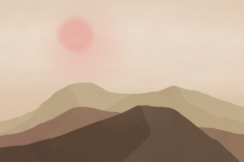 MUDECOR Framed Brown Gradient Mountain Ranges Red Sun Nature Wilderness Illustrations Rustic Abstract Colorful Living Room Bedroom Office Natural